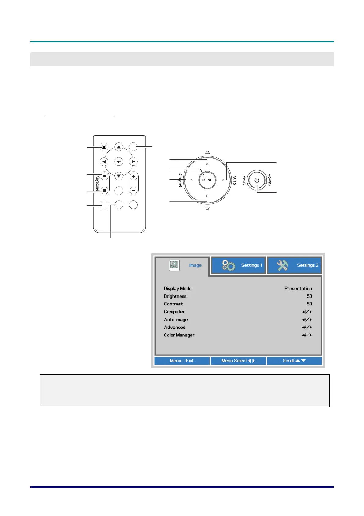 The projector has an OSD that lets you make image adjustments and change various settings.