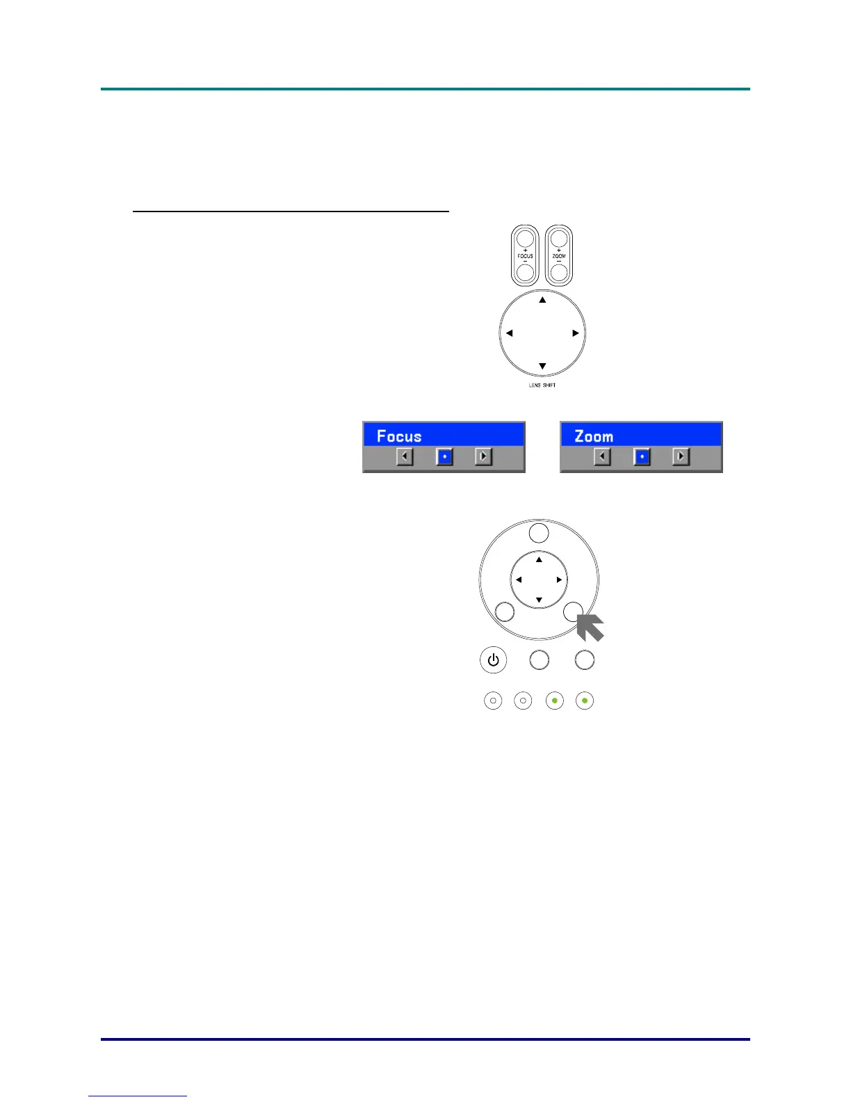 The focus and zoom can be adjusted manually from the projector focus/zoom panel. Refer to the fol-