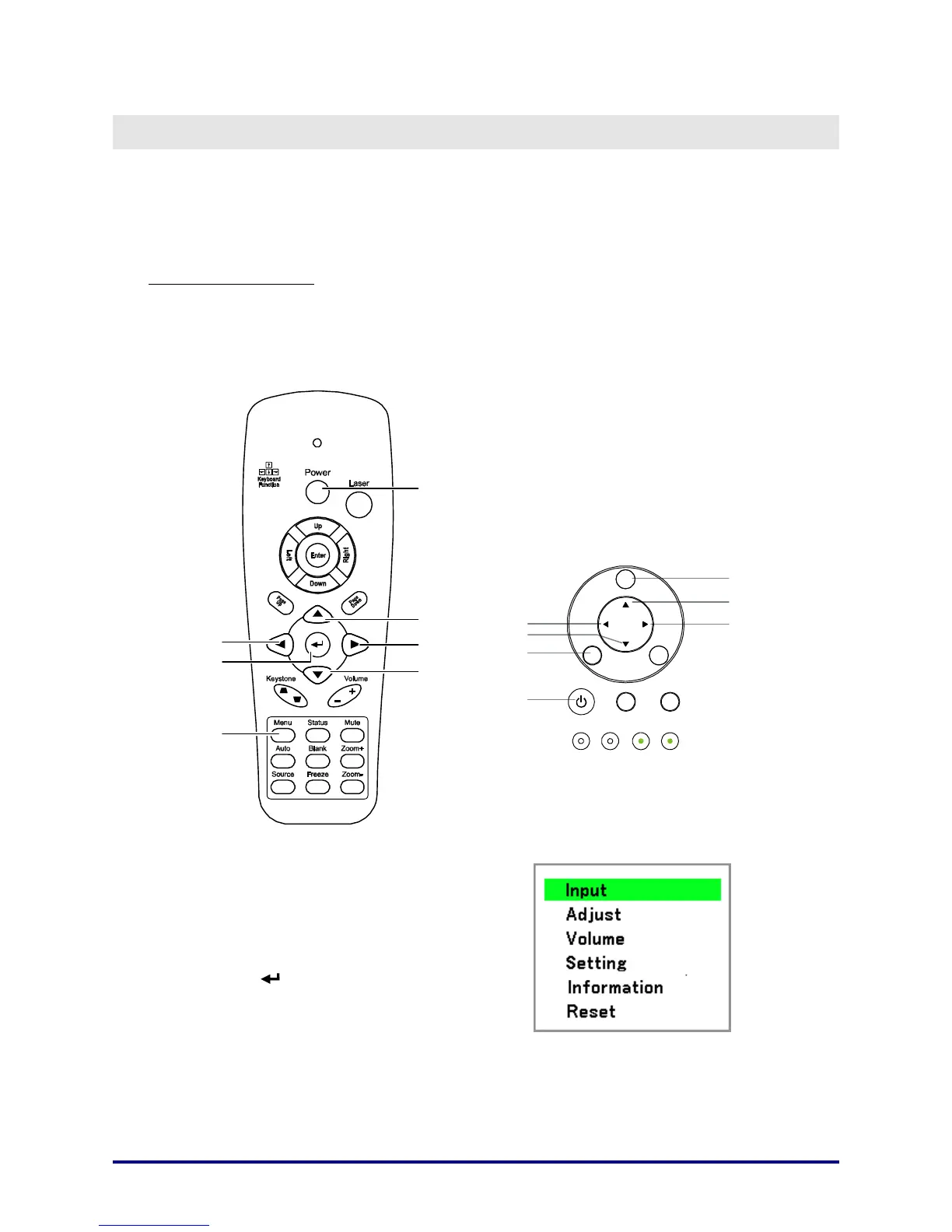 changes to the OSD. The following illustration shows the corresponding buttons on the remote control