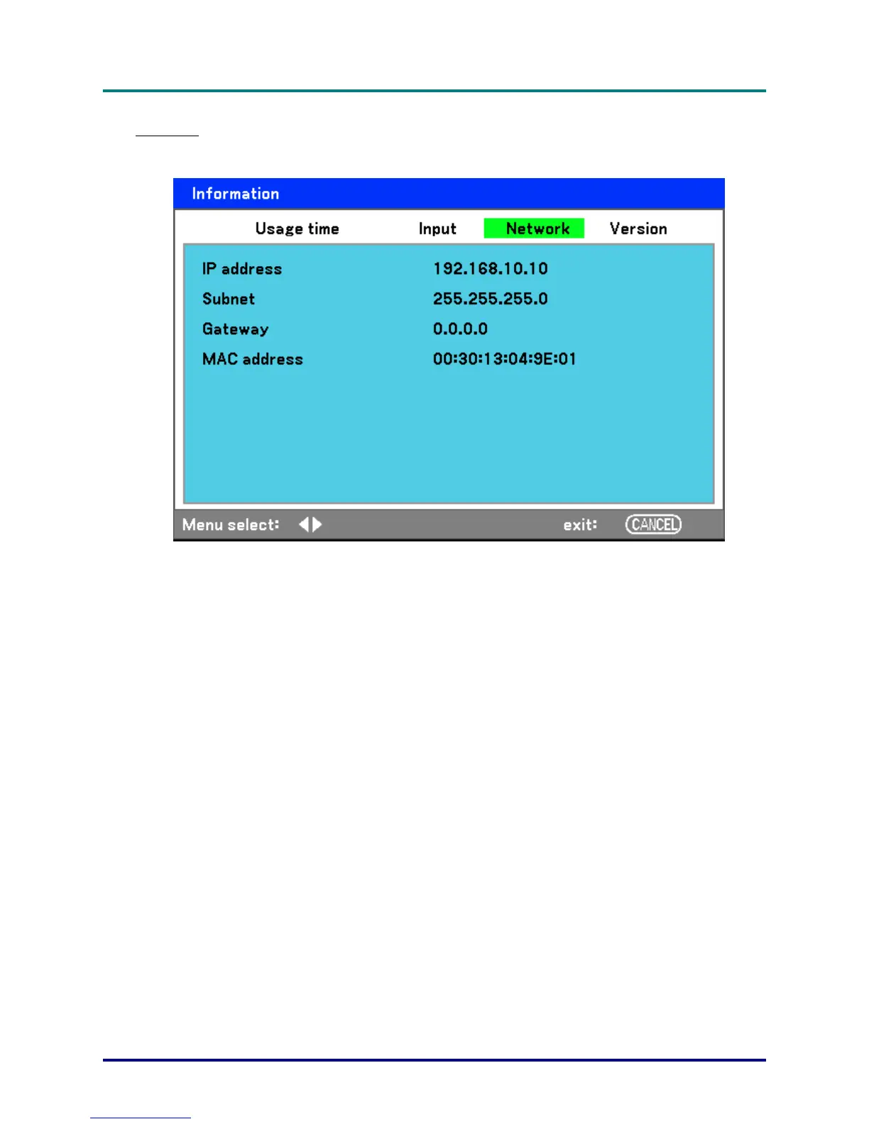 The Network tab displays LAN settings as previously defined (see Network setting on page 67).