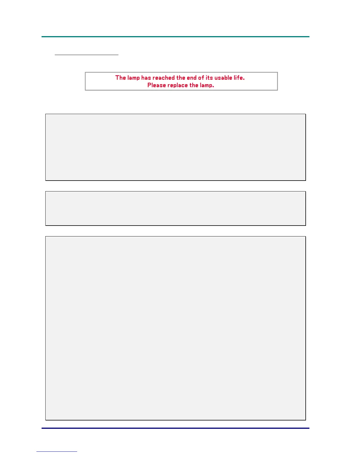 When a lamp reaches the end of it’s usable life, the following message is displayed. Replace the lamp.