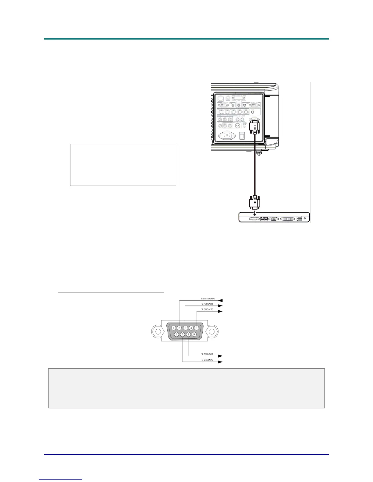 3. For long cables, it is recommended to set communication speed within projector menus to 9600 bps.