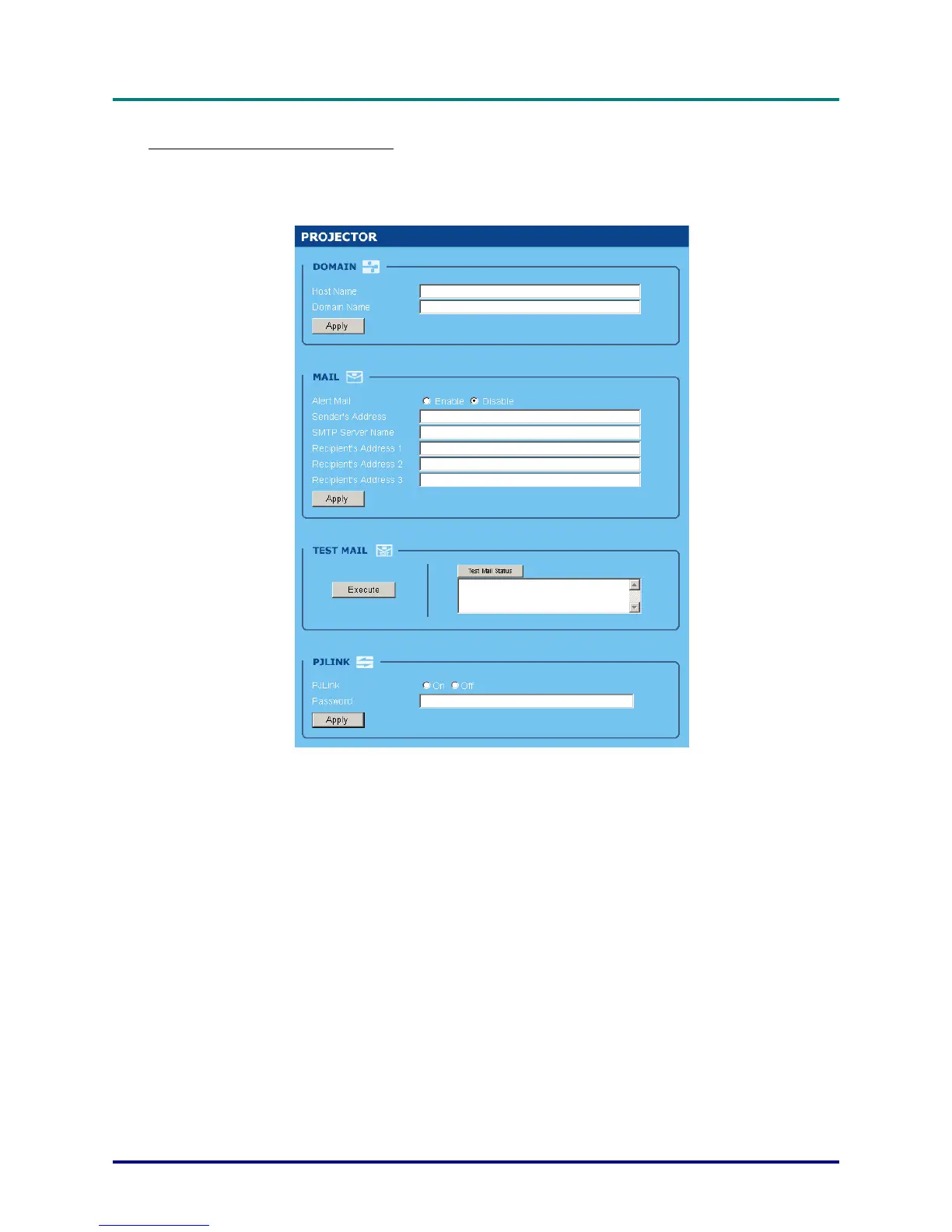 Domain Name: Type in domain name of the network connected to the projector. Up to 60 alphanumeric characters