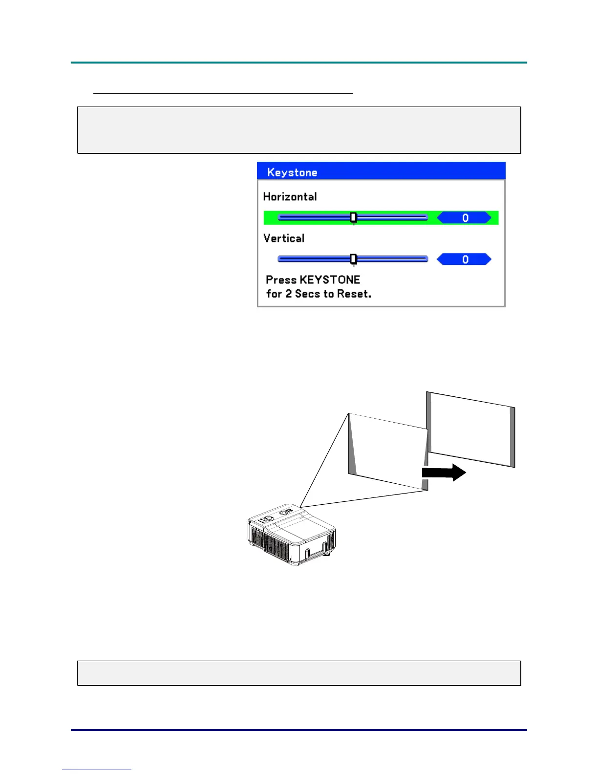 Holding down the Keystone button for 2 seconds resets the default keystone values.