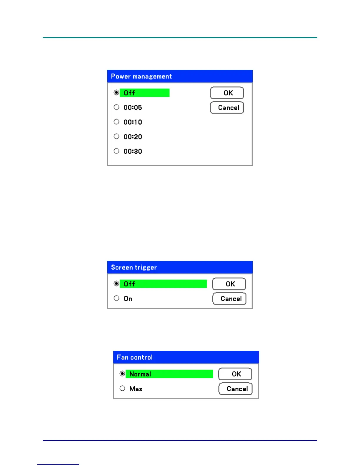 Set Screen trigger to On to enable the projector to automatically lower the projection screen when