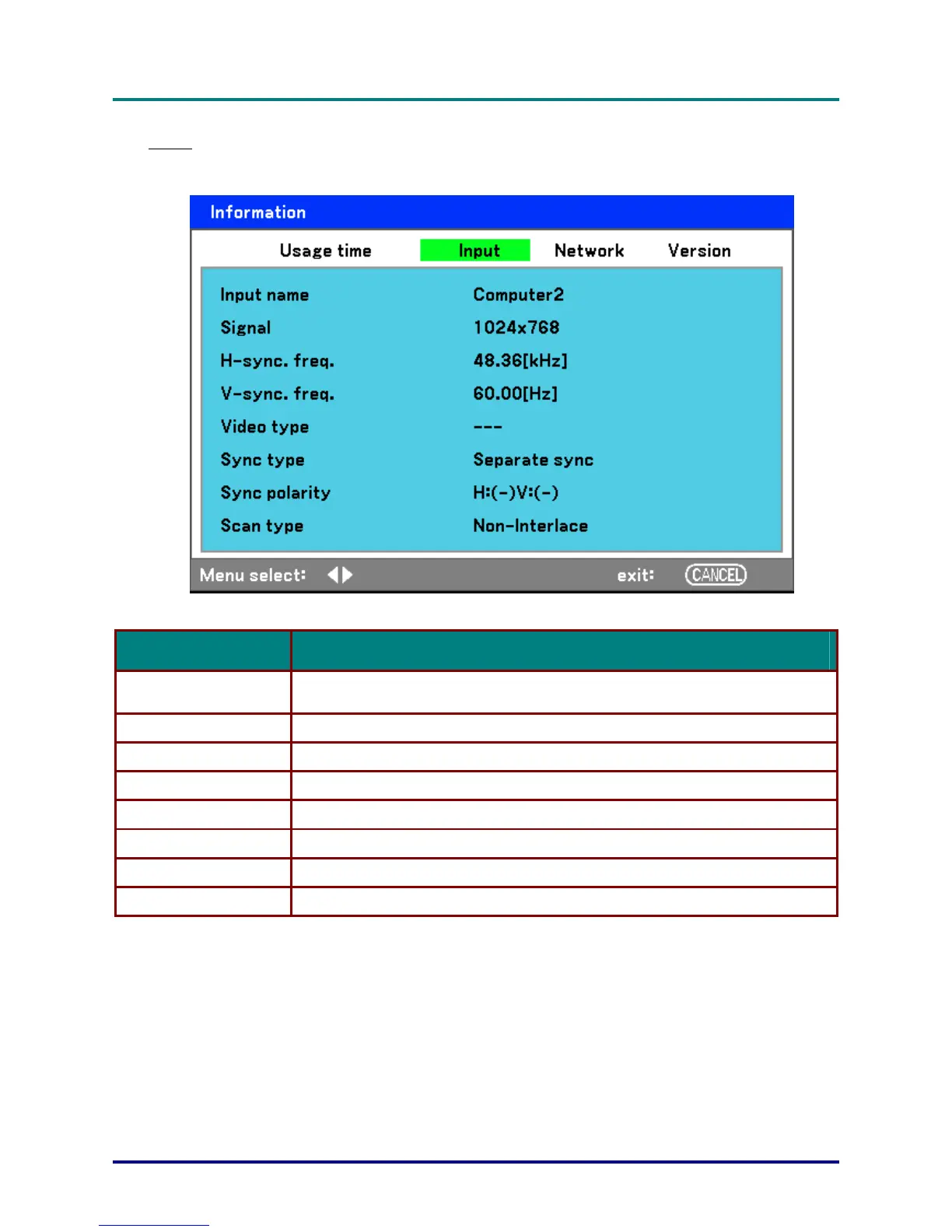 Signal Displays the Source name of the signal presently being used.
