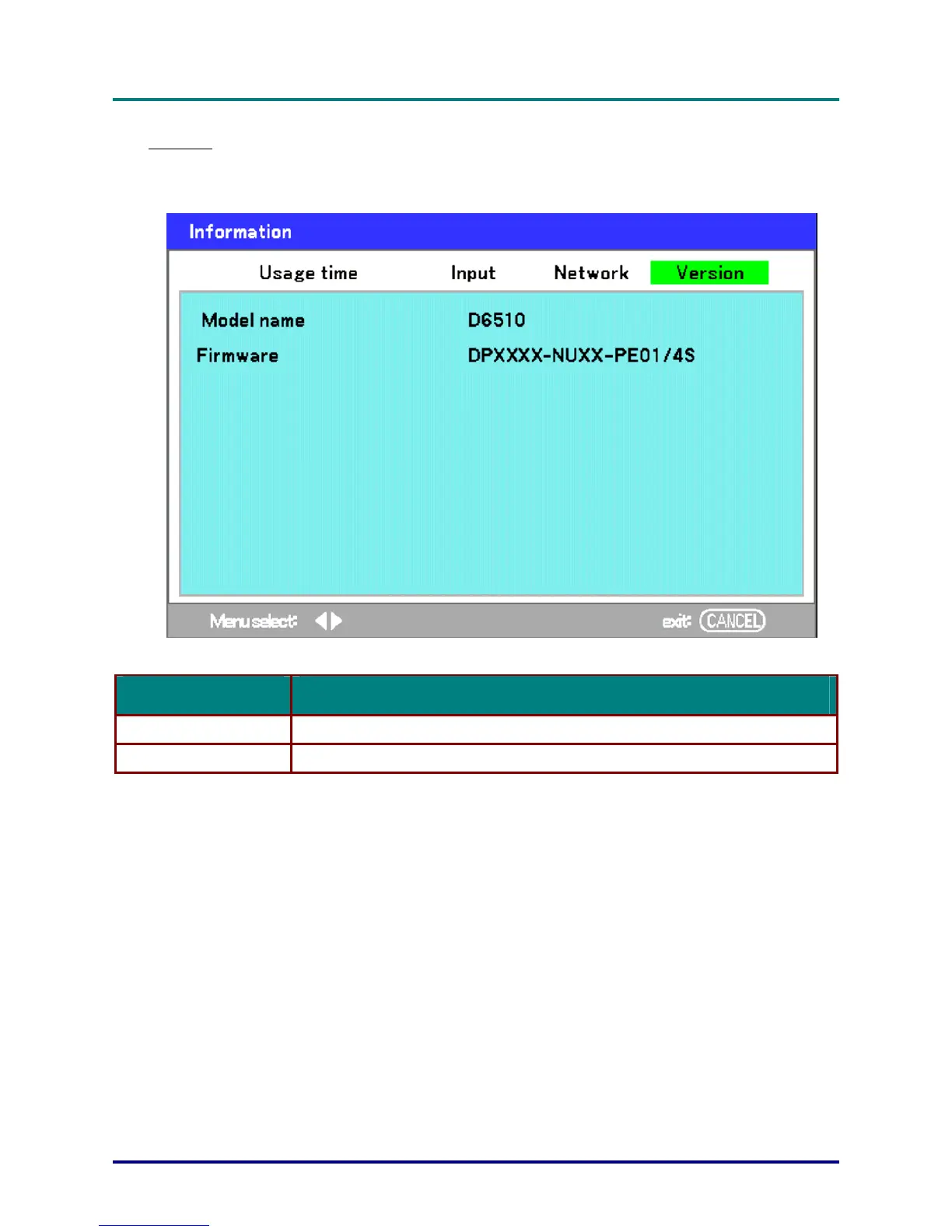 Firmware Displays Firmware version and Color Wheel currently installed (4-seg or 6-seg).