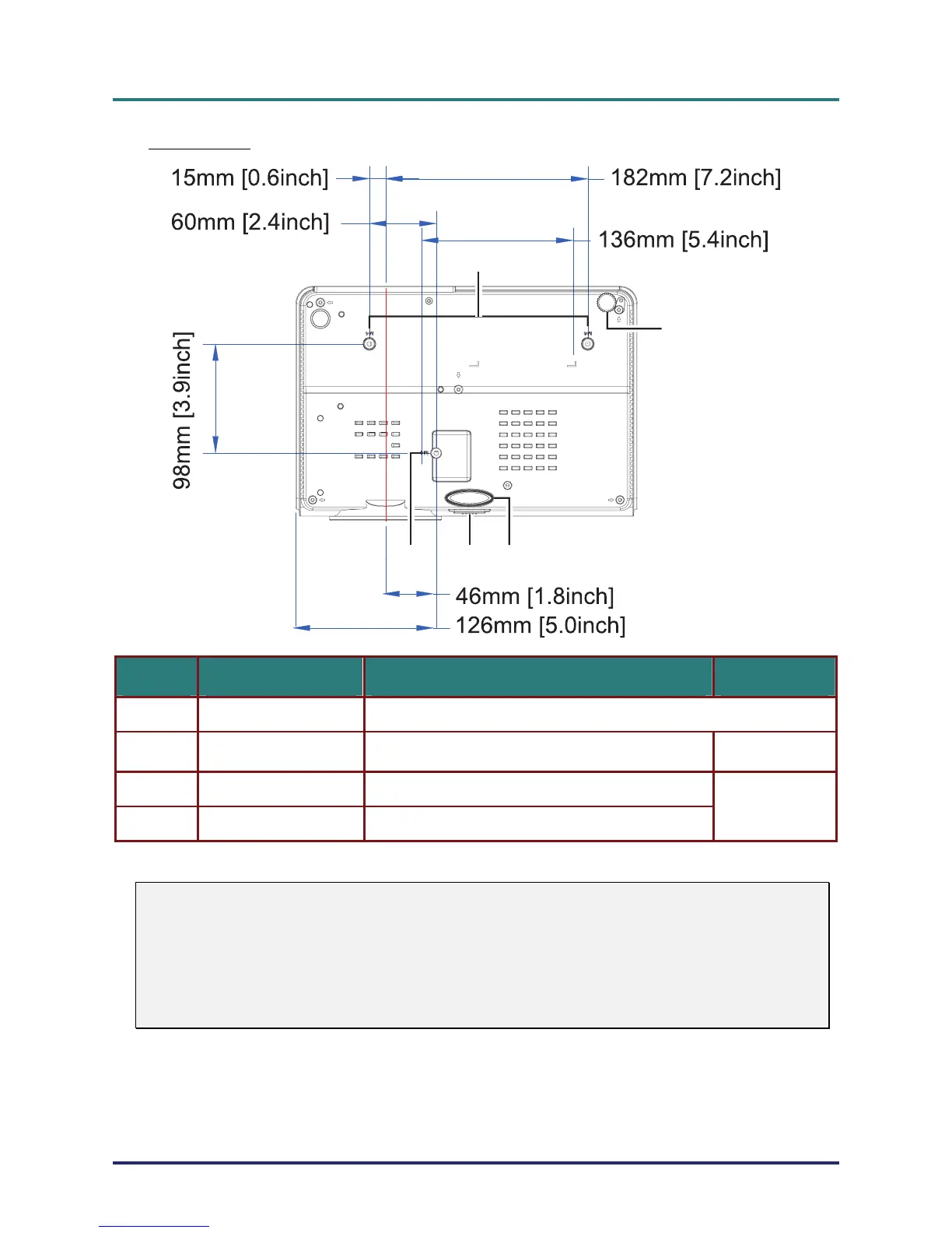Ceiling support holes Contact your dealer for information on mounting the projector on a ceiling