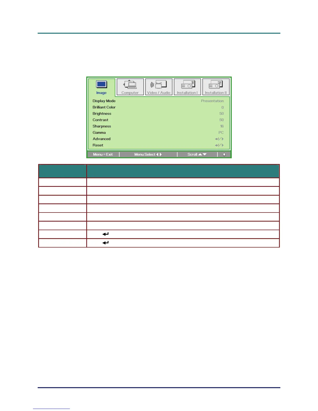 Menu. Press the cursor メヤ button to move up and down in the Image menu. Press ユモ to change