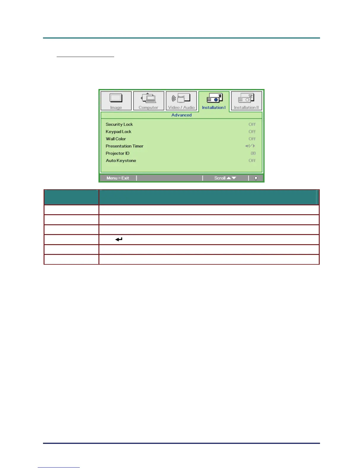 ルヴ to move to the Advanced menu and then press Enter or モ. Press ルヴ to move up and down in