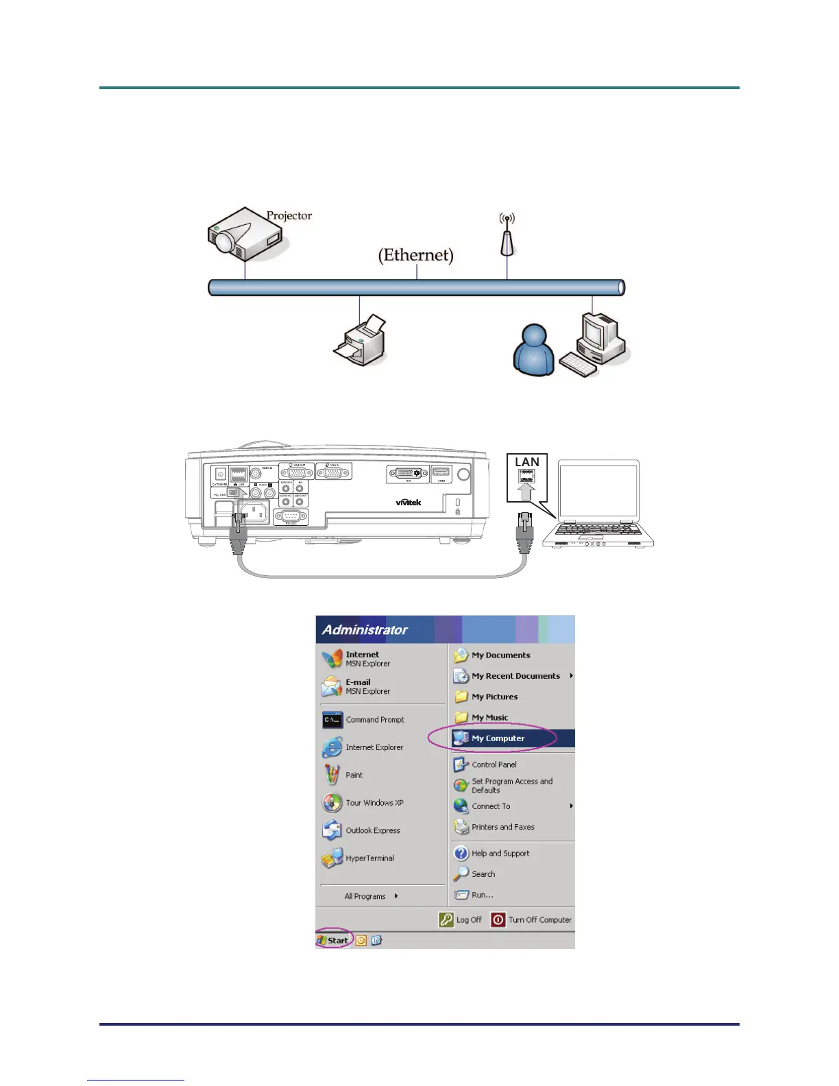1. Connect an RJ45 cable to RJ45 ports on the projector and the PC (Laptop).