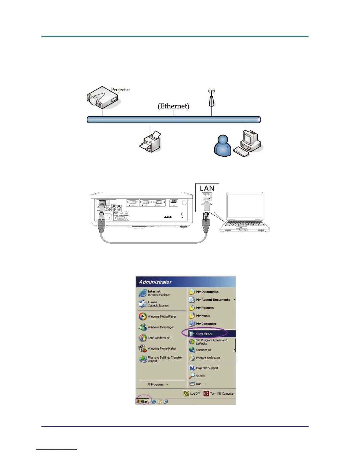 1. Connect an RJ45 cable to RJ45 ports on the projector and the PC (Laptop).