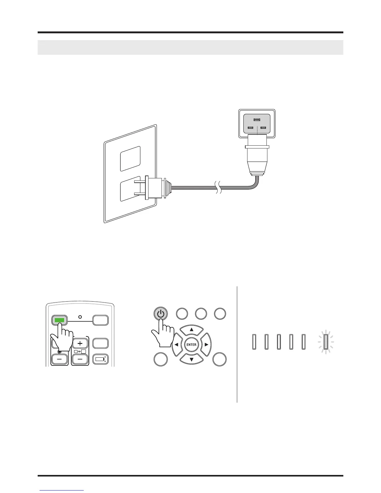 locale. Plug the female end of the power cord into the AC receptacle on the rear of the projector (AC 100V ~ 240V); Then,