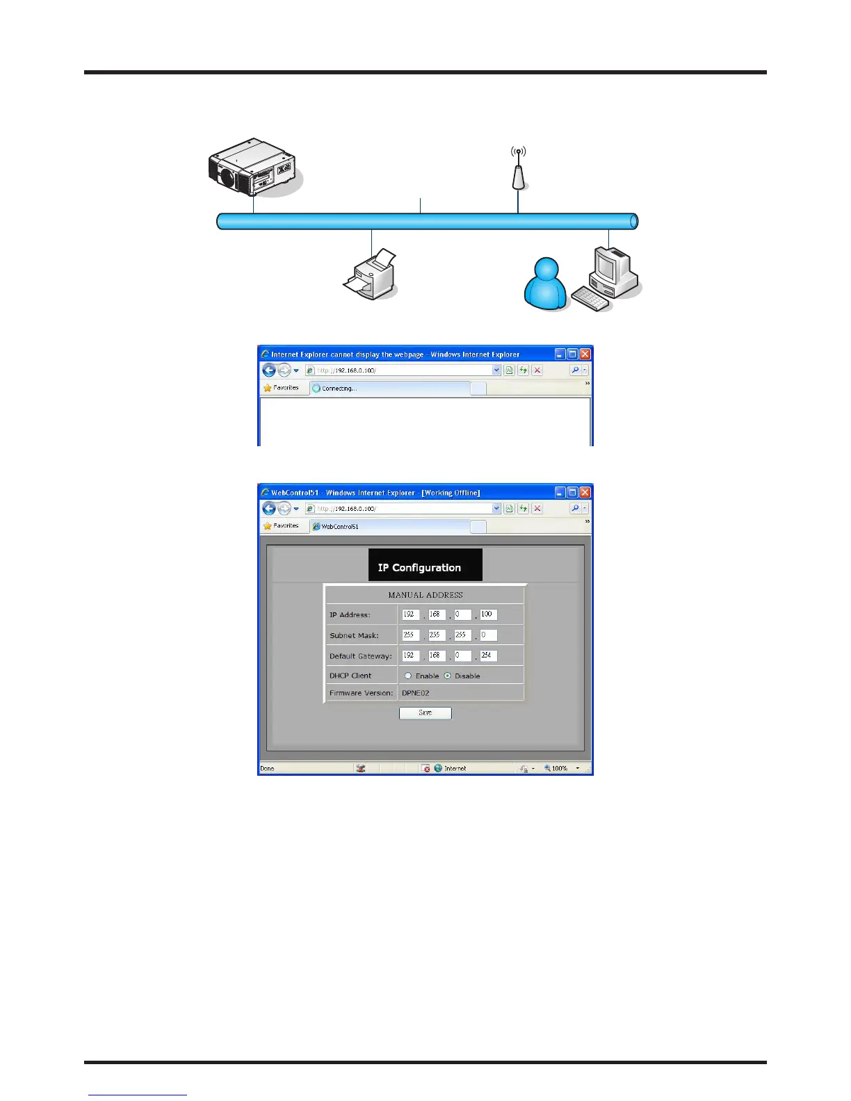 2. On the control PC, open a web browser and enter the IP address of the projector.
