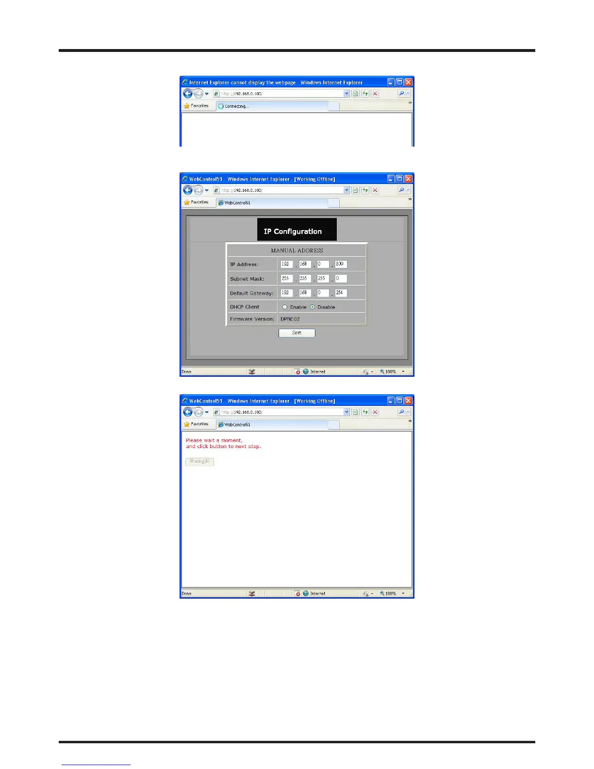 8. On the control PC, open a web browser and enter the IP address of the projector.
