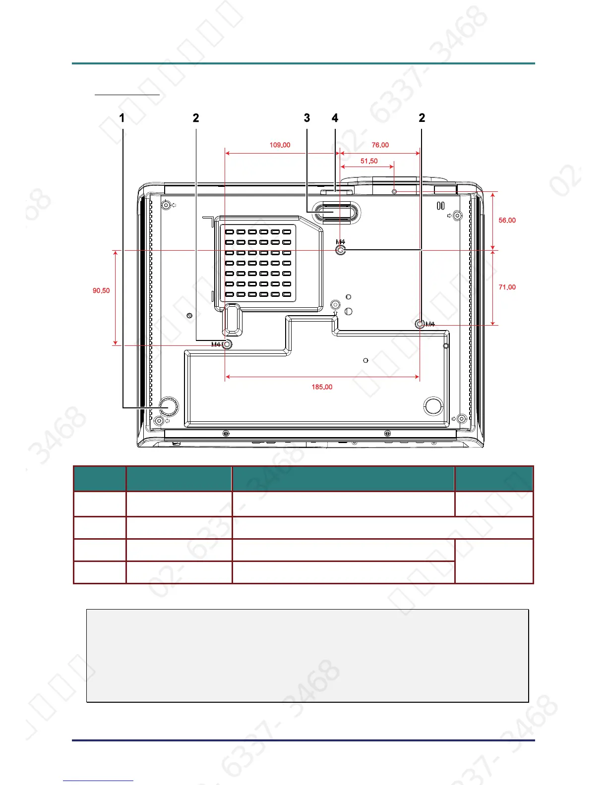 Ceiling support holes Contact your dealer for information on mounting the projector on a ceiling