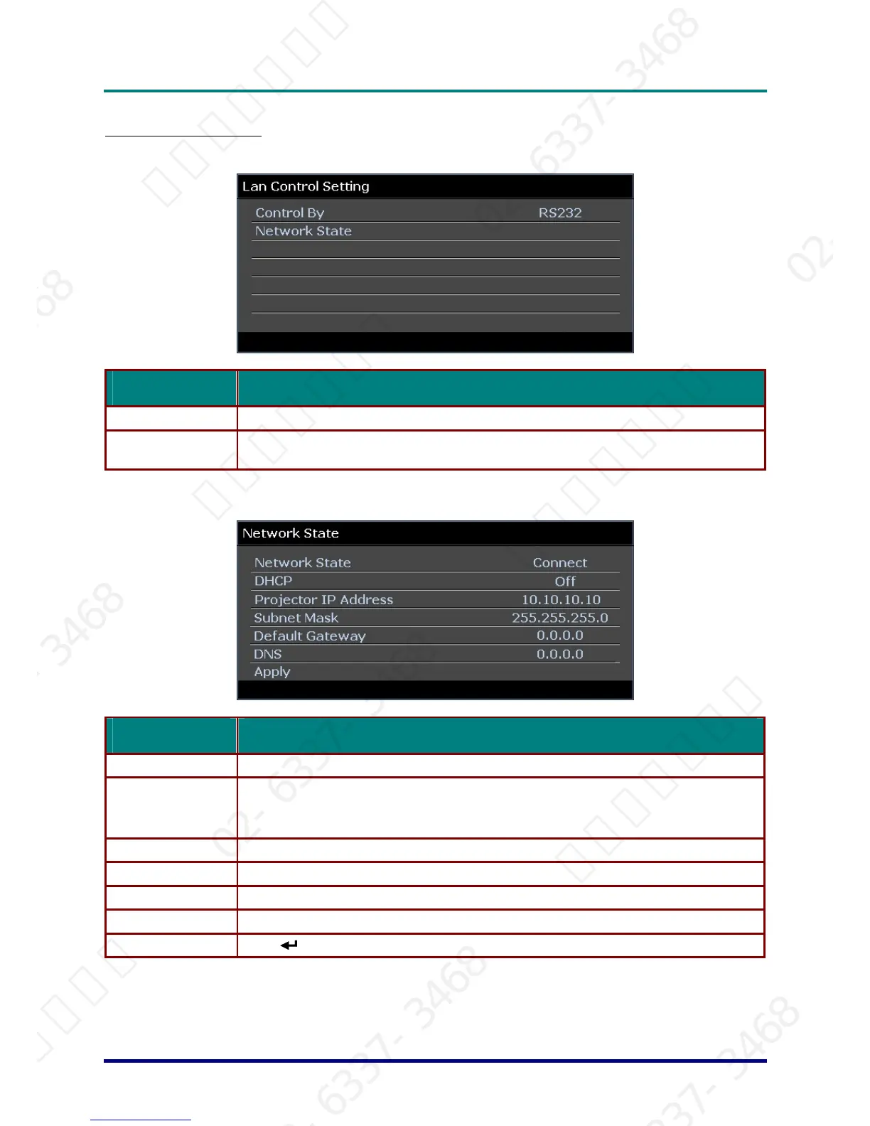 Press the ENTER button to enter the Lan Control Settings sub menu.