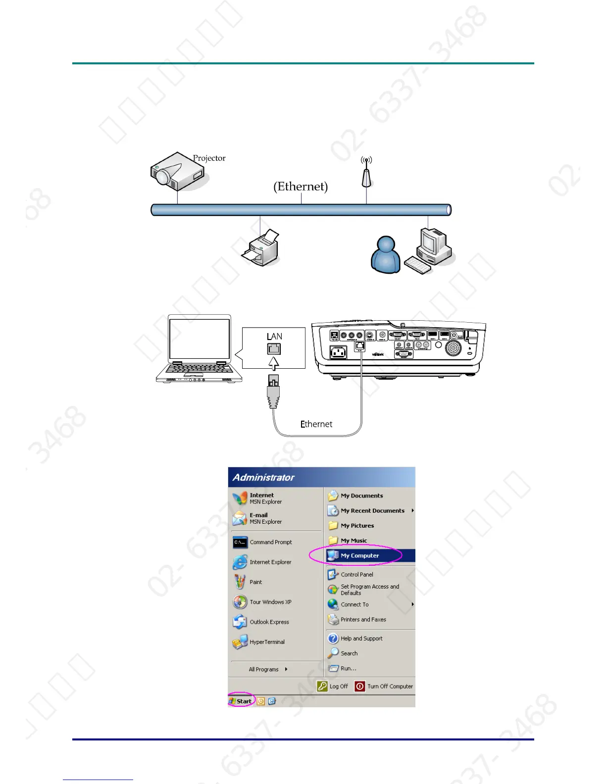1. Connect an RJ45 cable to RJ45 ports on the projector and the PC (Laptop).