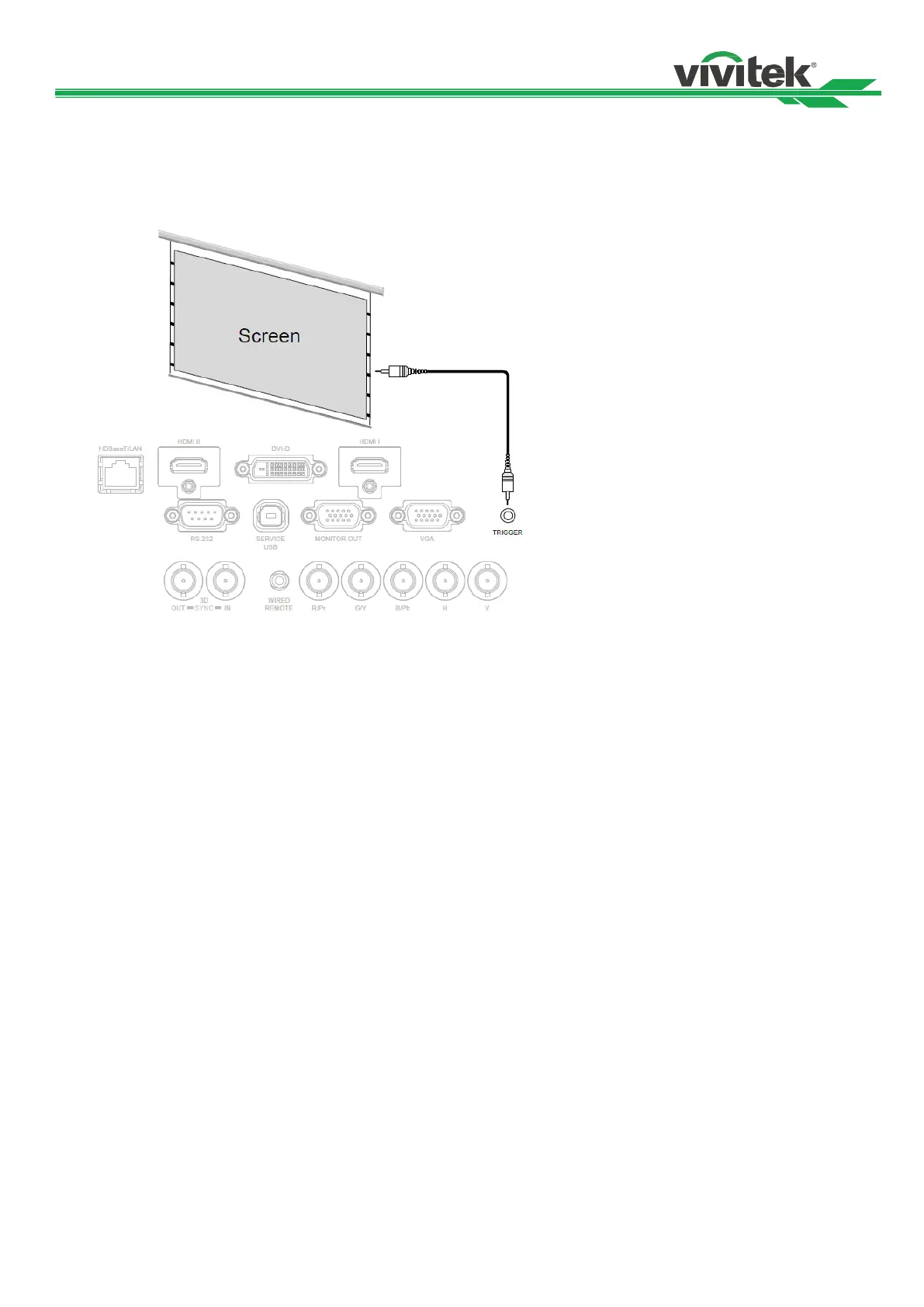 If your projection system includes the electric projection screen and other 12V trigger device, you can connect these
