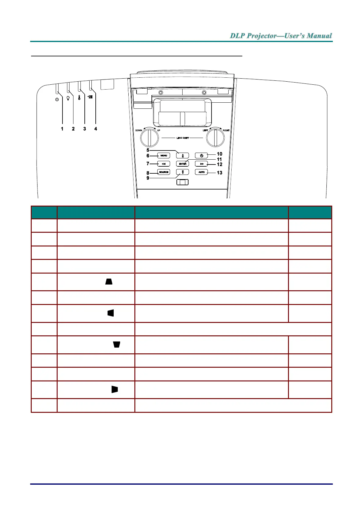Top view—On-Screen Display (OSD) buttons and LEDs
