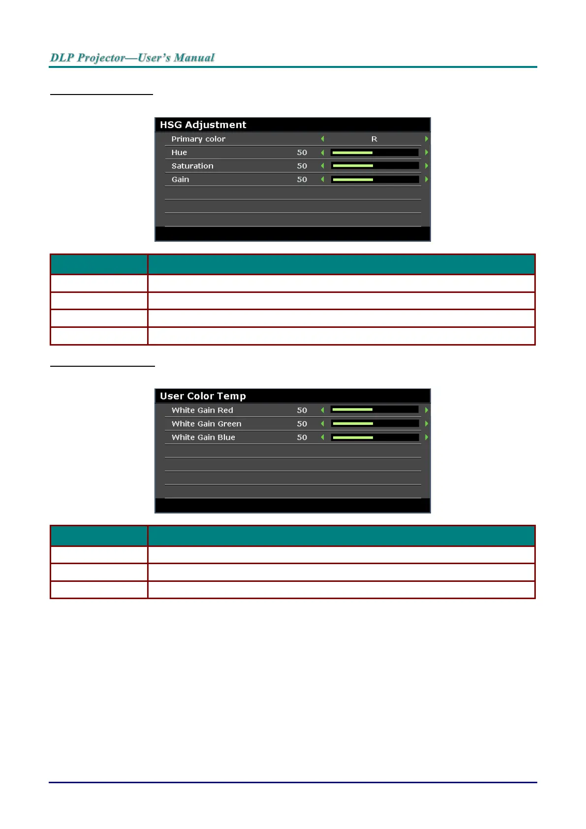 Press the ENTER button to enter the User Color Temp sub menu.