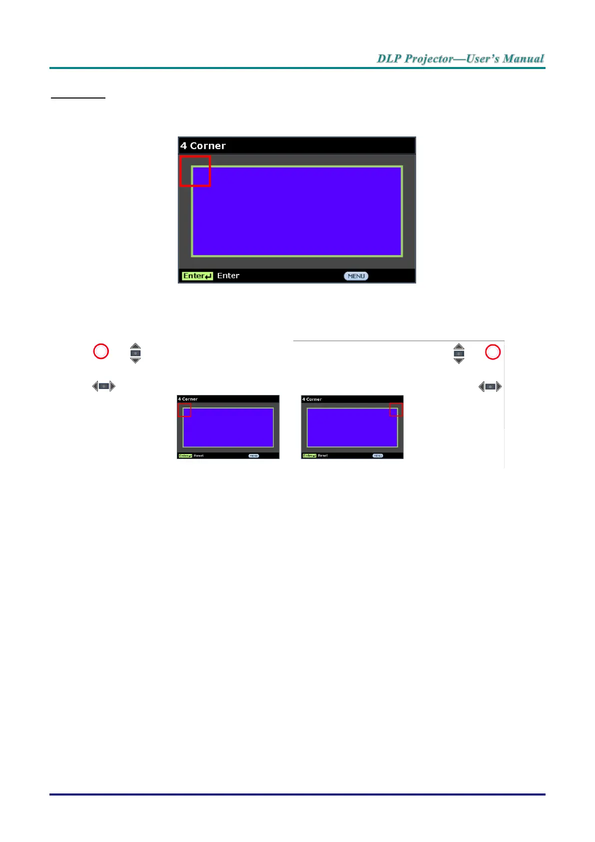 1. Press the cursor ▲ / ▼ / ◄ / ► buttons to select a corner and press ENTER.