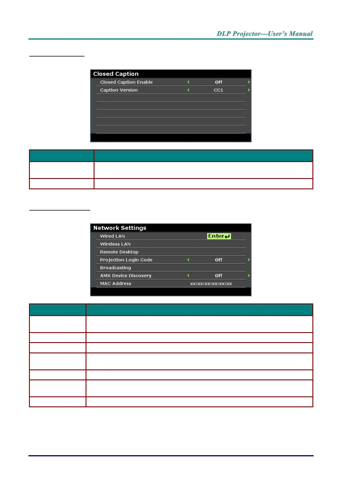 Press the ENTER button to enter the Wired LAN sub menu. See Wired LAN on page