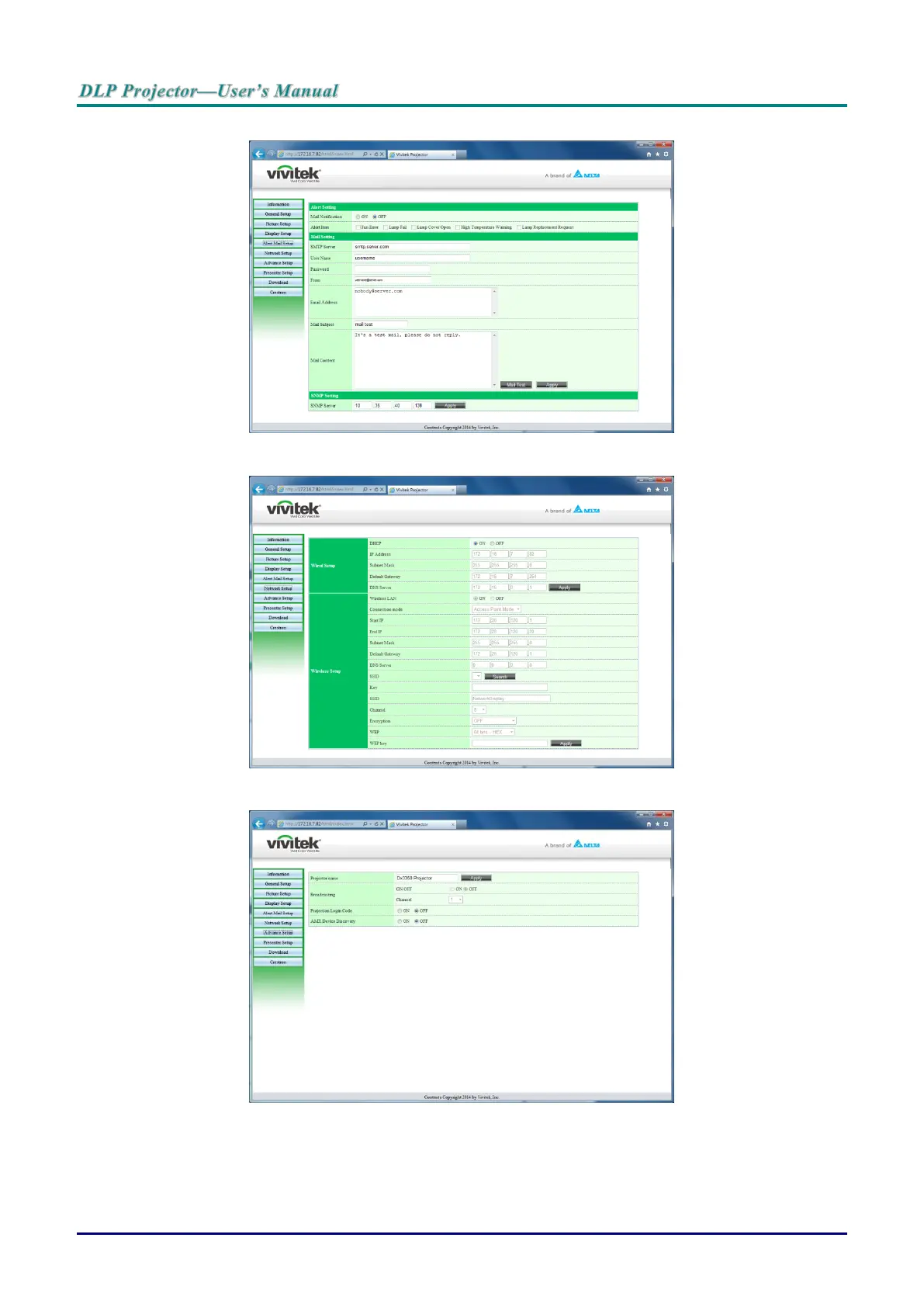 The Alert and Mail Settings pages provide status and mail notification functionality.