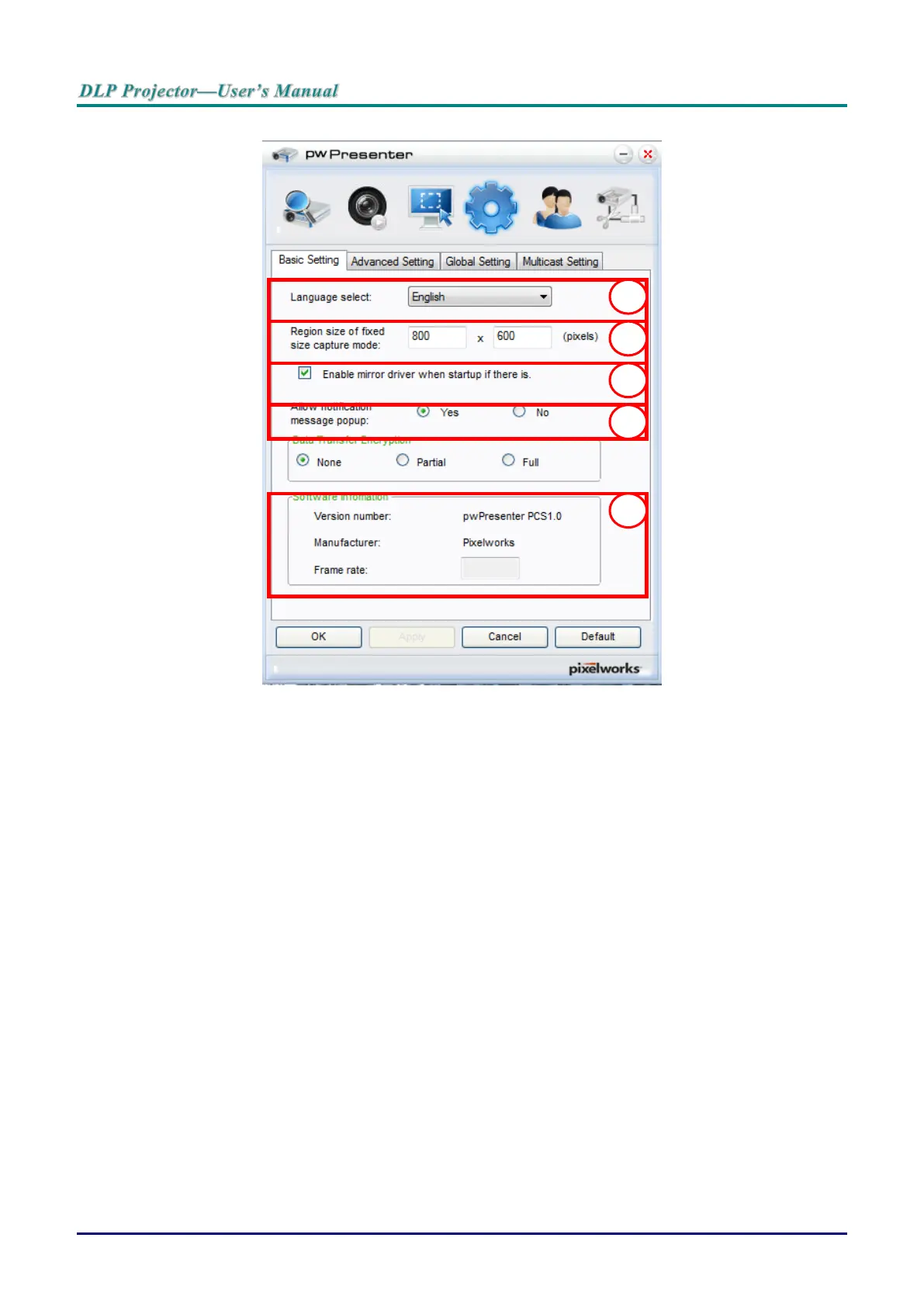 7. Click the Basic Setting tab to configure pwPresenter basic settings.