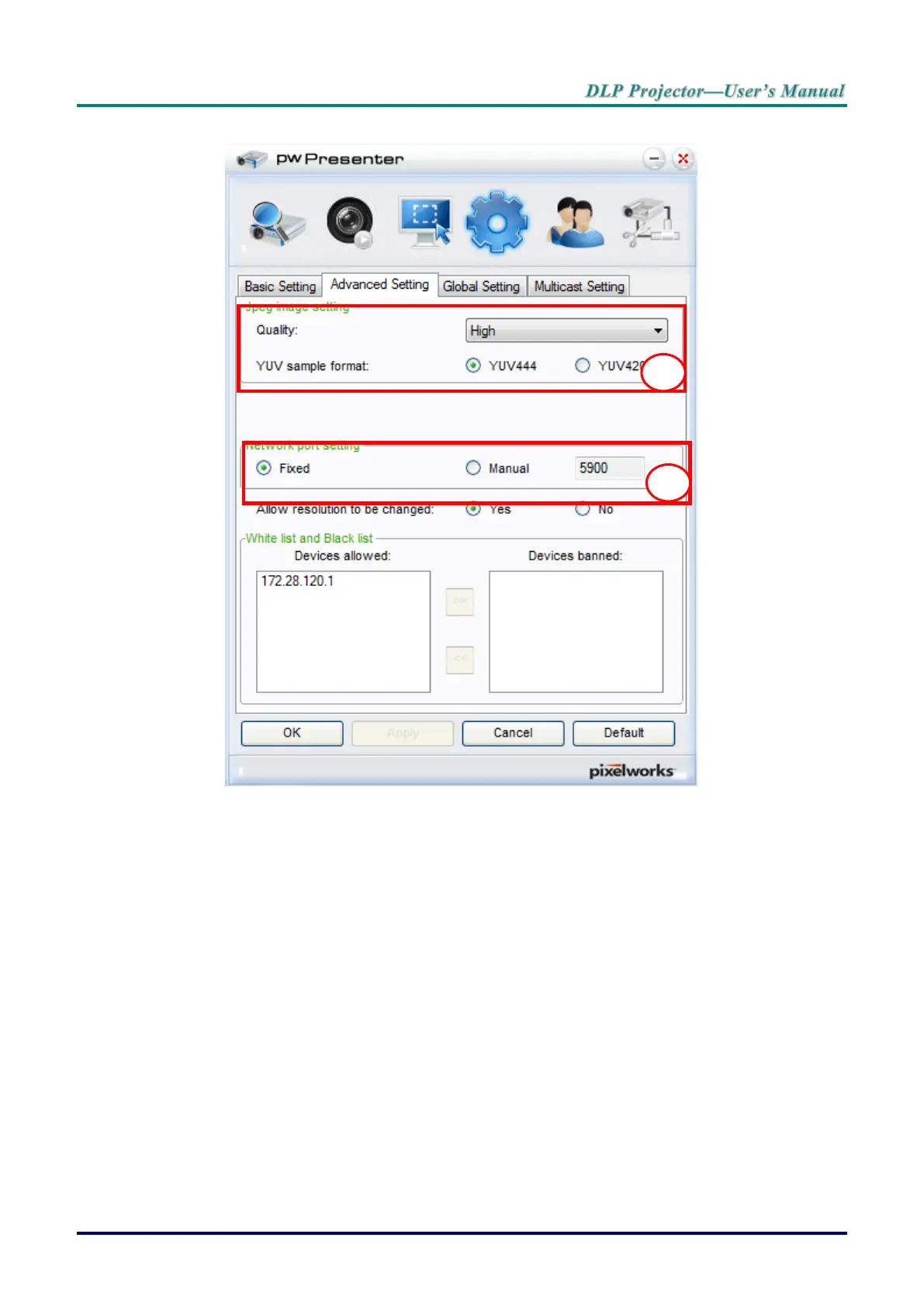 8. Click the Advanced Setting tab to configure pwPresenter advanced settings.