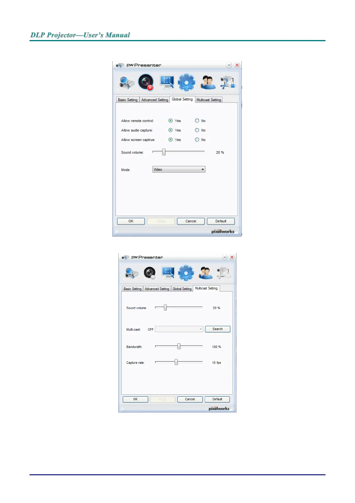 9. Click the Global Setting tab to configure pwPresenter global settings, which allows for remote