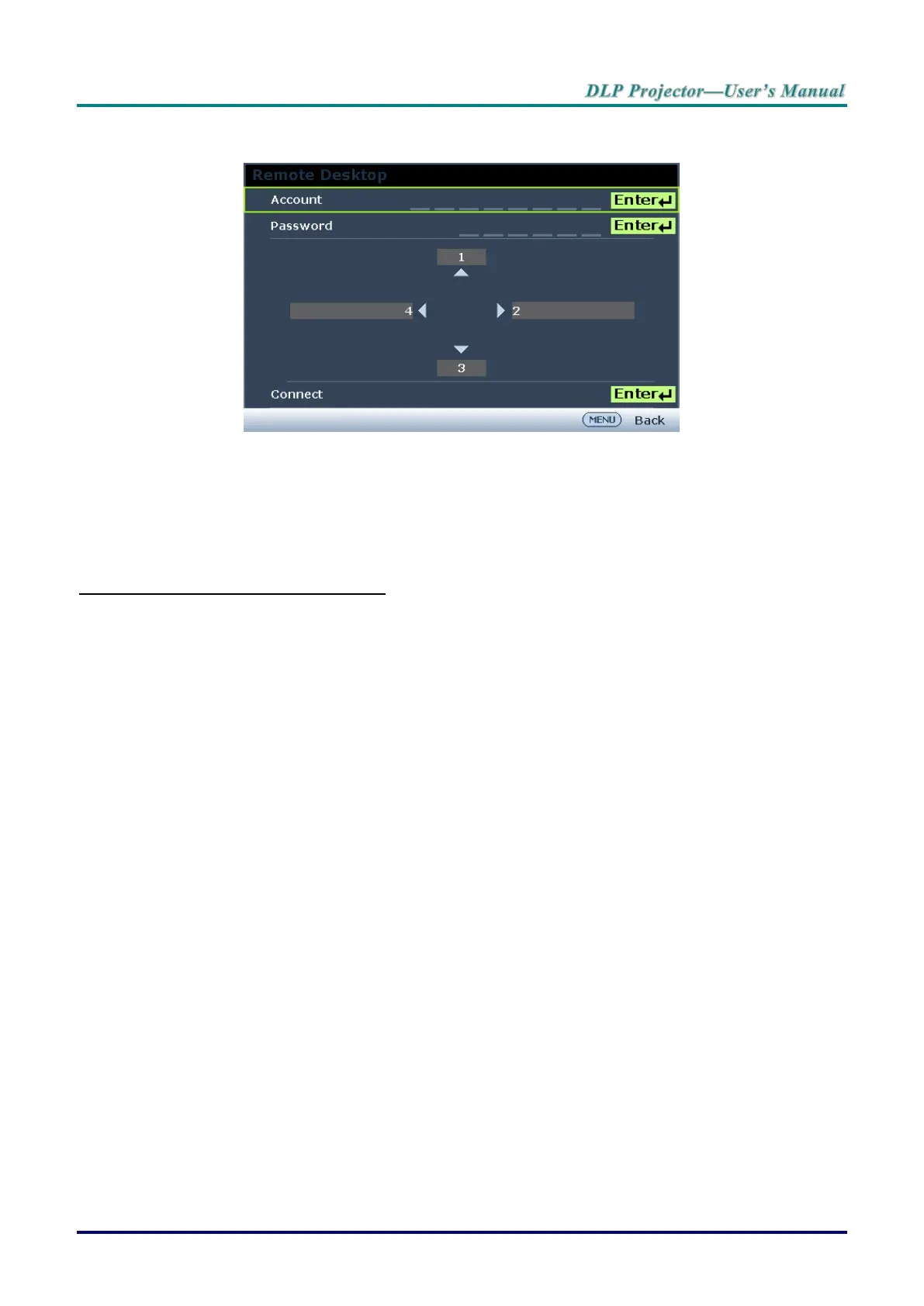 • Remote Desktop Control only supports LAN source so the projector source is fixed on LAN.