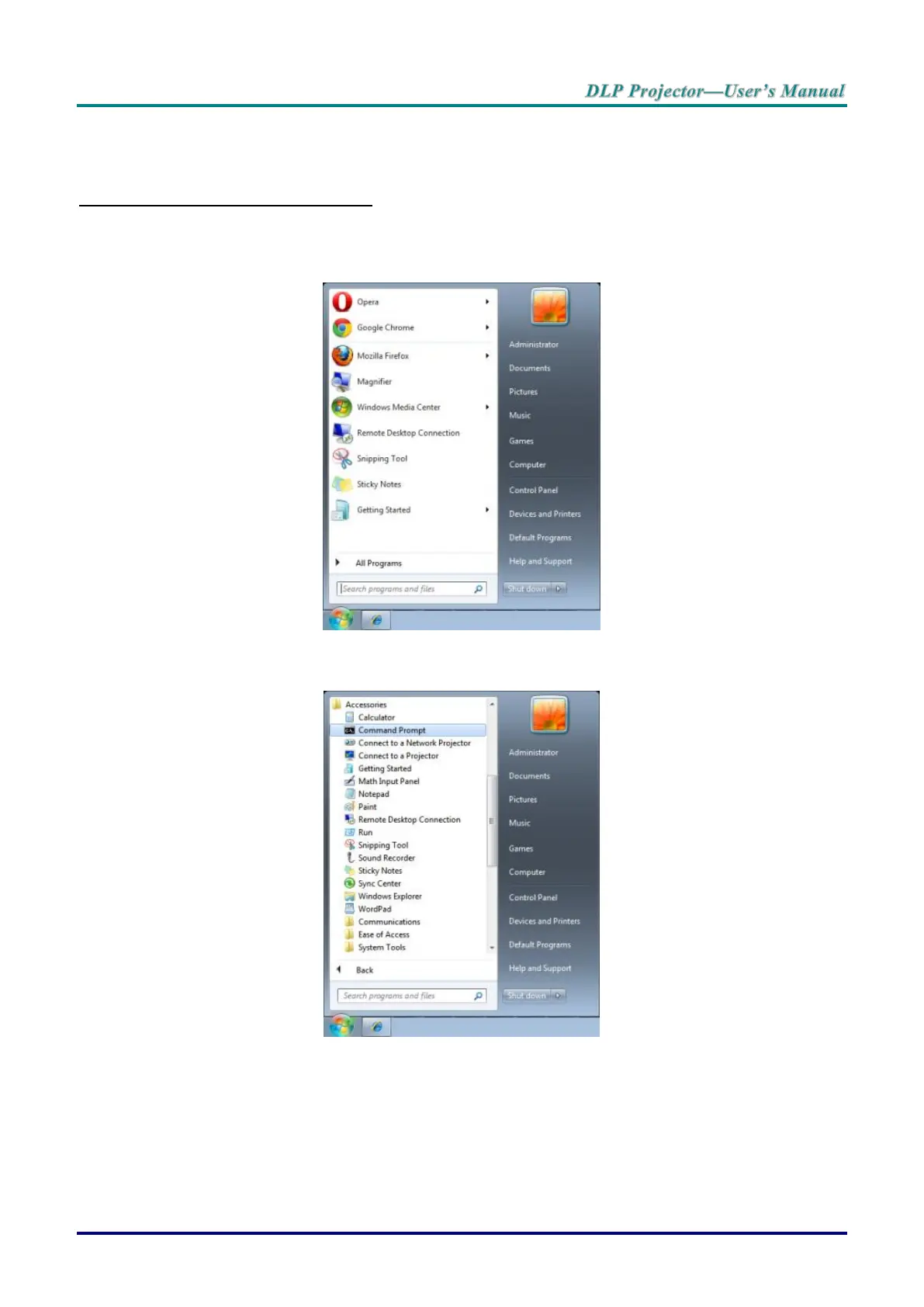 2. Navigate to Start > All Programs > Accessories and select Command Prompt. The command