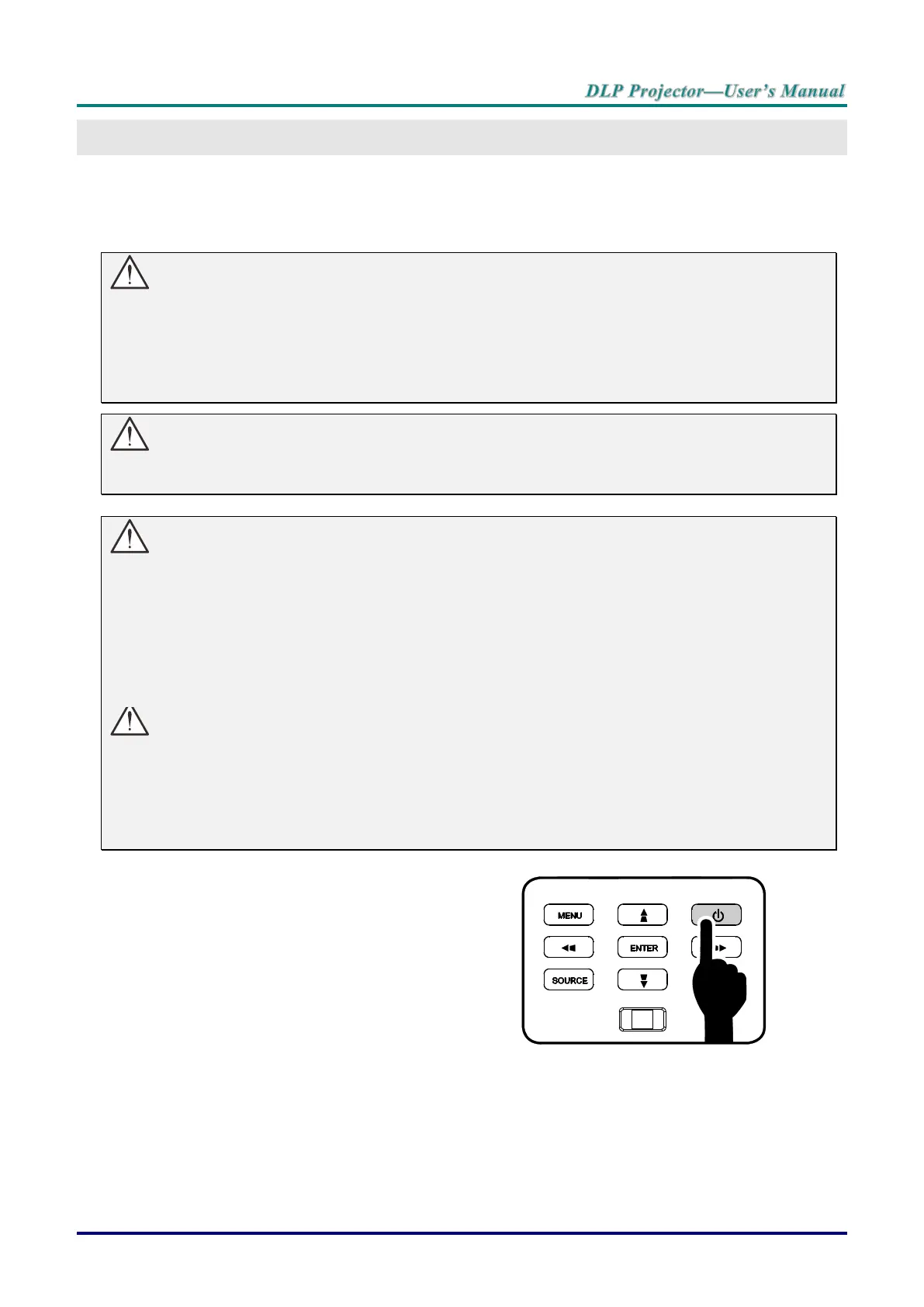 Be sure to turn off and unplug the projector at least 30 minutes before replacing the lamp. Failure to