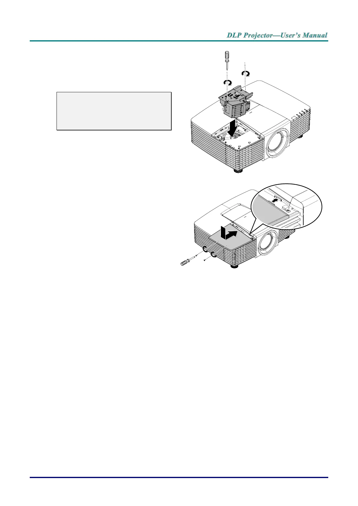Turn on the projector and reset the lamp after the lamp module is replaced.
