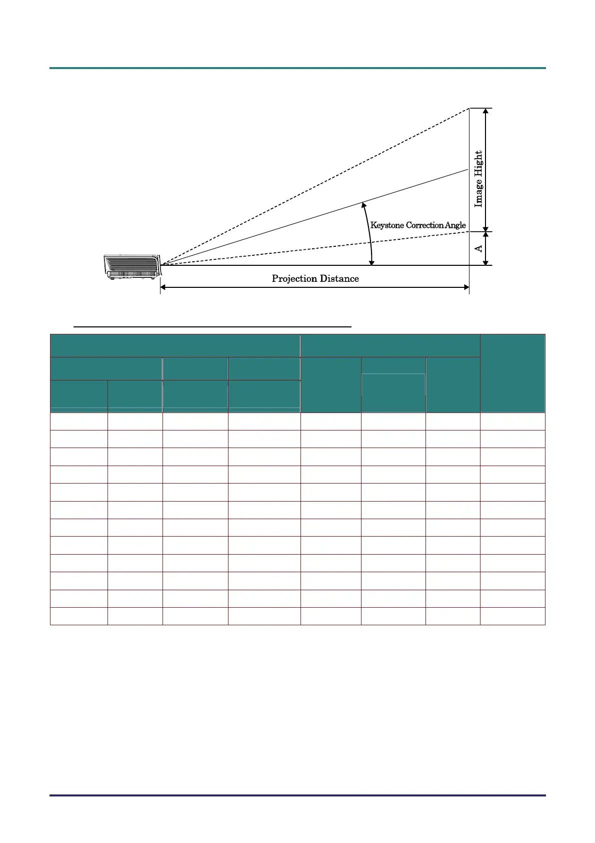 H1080 Series Projection Distance and Size Table