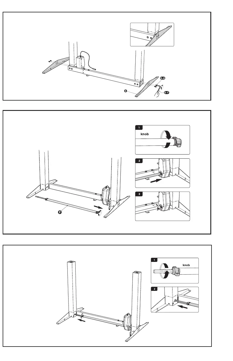 Attach the side brackets (E) to both ends of the frame using four M6x12mm bolts (S-A). Tighten with