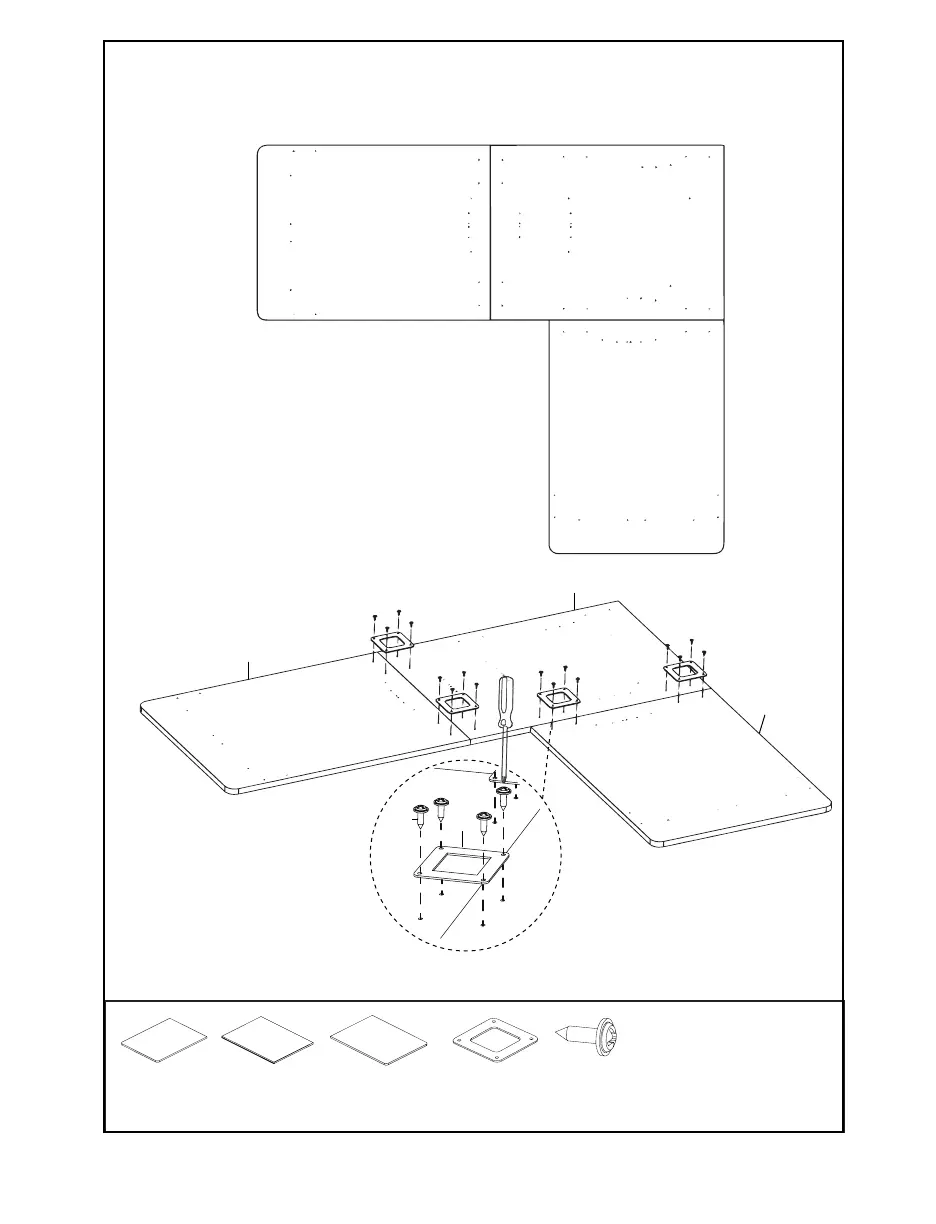 Connect Le, Middle, and Right Desktop (A, B, C) pieces together using Desktop Connectors (O),