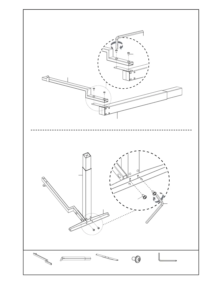 Attach Angled Right Crossbar (G) to Right Leg (J) using M6x8mm Screws (S-A) and 5mm Allen