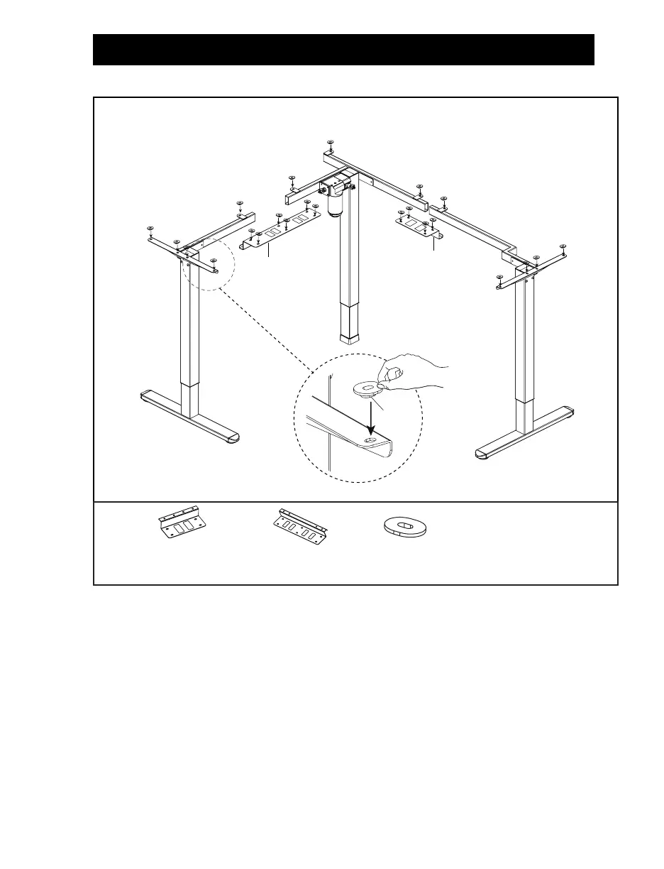 Aix Anti-Vibration Pads (T) to desk frame, Short Connector Bracket (M), and Long