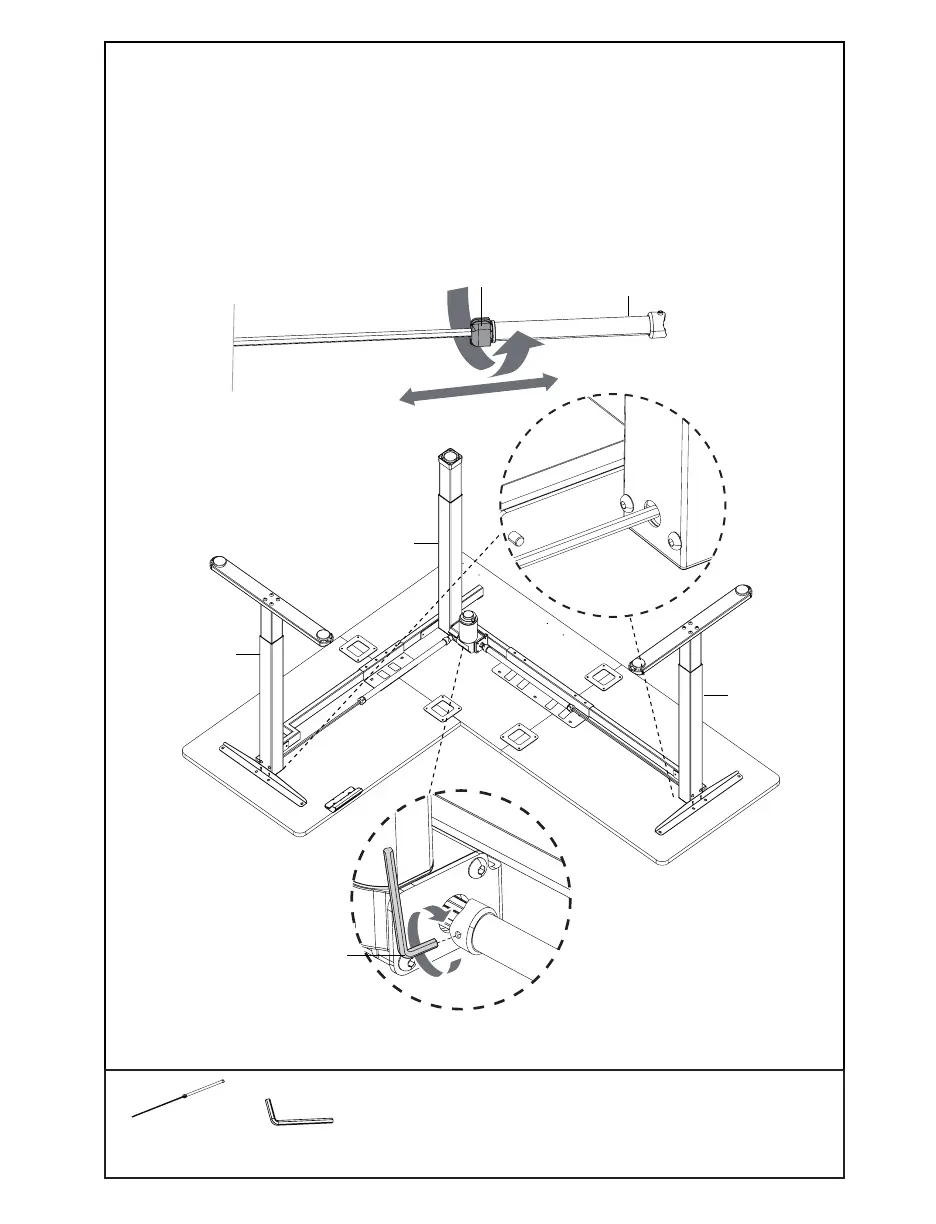 Loosen the coupling nut on Sync Rods (H) and insert hex sha into Le and Right Leg (L, J),