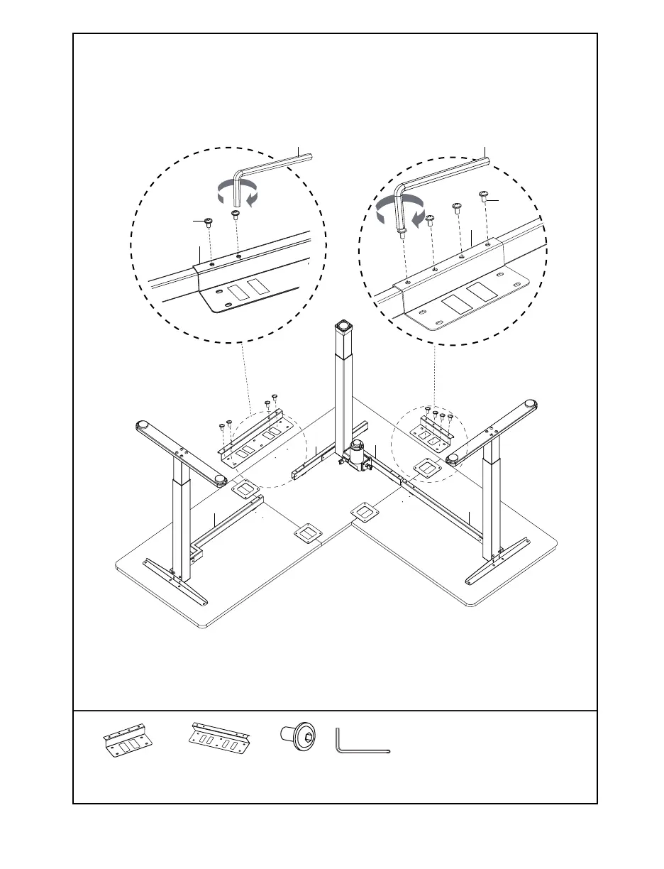 Begin connecting frame to desktop by placing assemblies on desktop as shown below. Connect