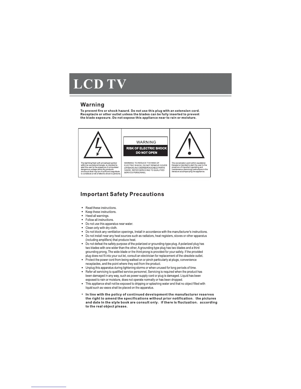 Vivo LTV32HD - Warning and Safety Precautions; Important Safety Precautions