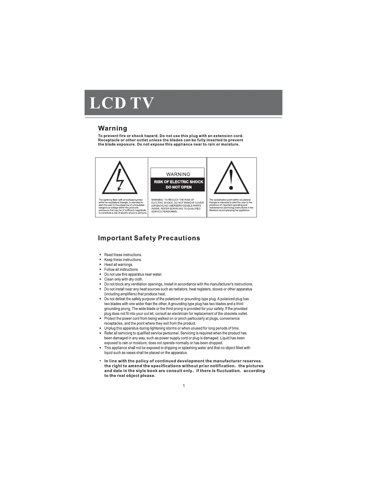 Vivo LTV40FHD - Warning; Important Safety Precautions