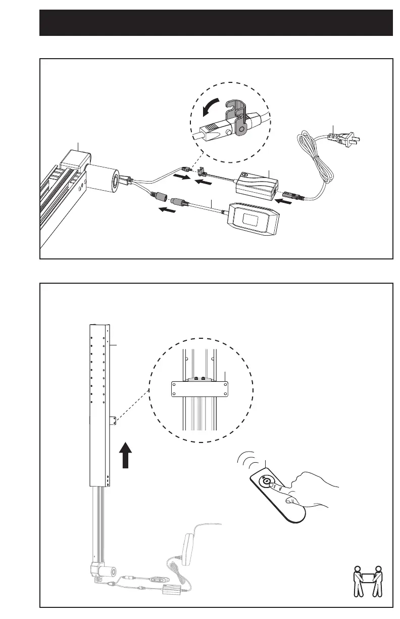 Plug Control Unit (F) and AC Adapter (G) into Li Column (A). Plug Power Cable (J) into AC Adapter
