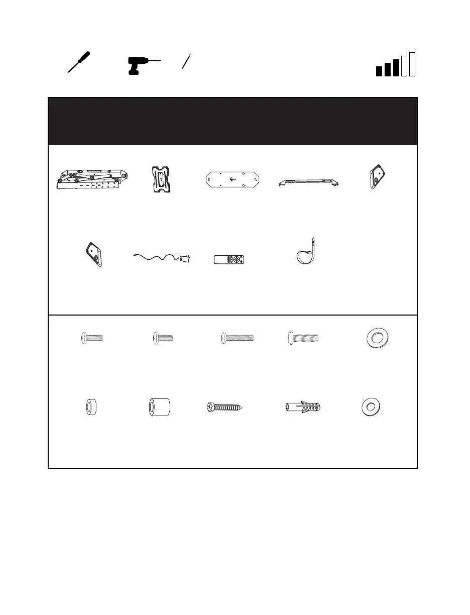 Vivo Mount-E-FD55 - Package Contents and Tools; Tools Required for Assembly; Included Parts List