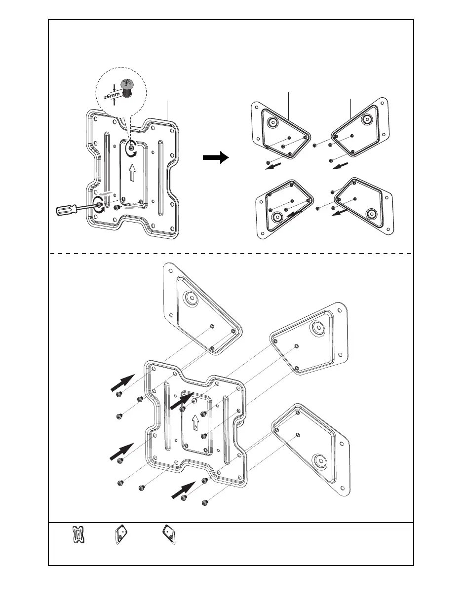 top screw leaving at least 5mm of threads exposed. Remove the screws from VESA Adapters