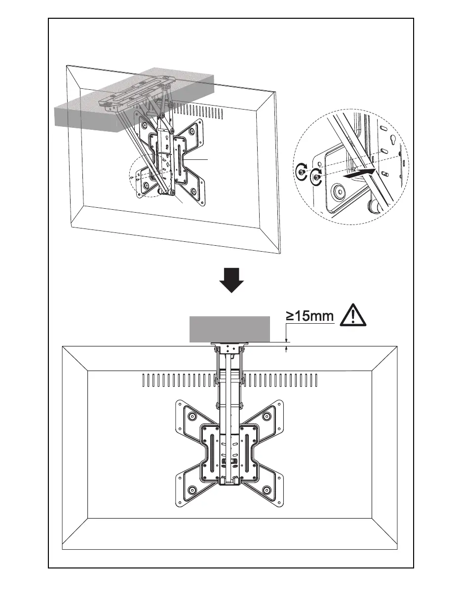 NOTE: Clearance between the ceiling and top edge of TV should be no less than 15mm when TV