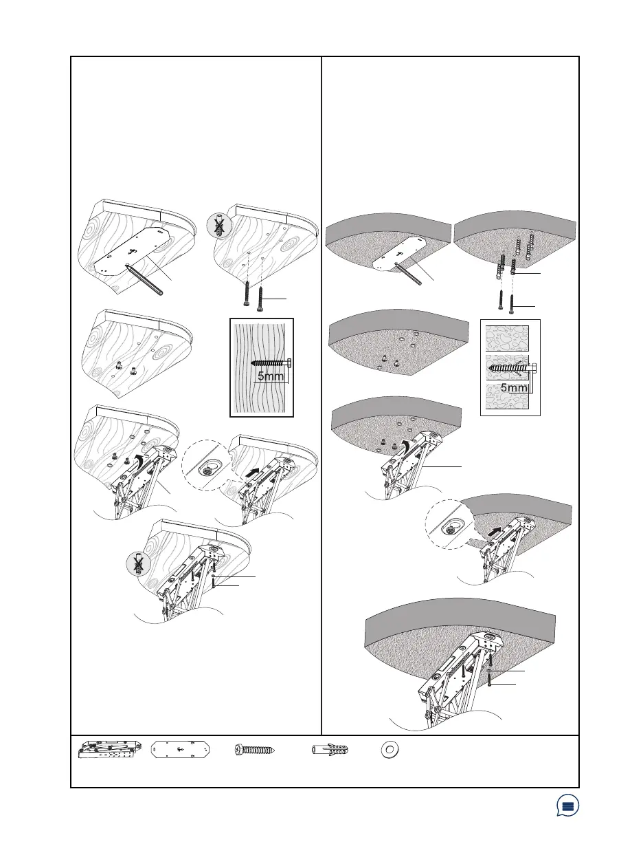 Screws (W-A), leaving a 5mm gap from ceiling.