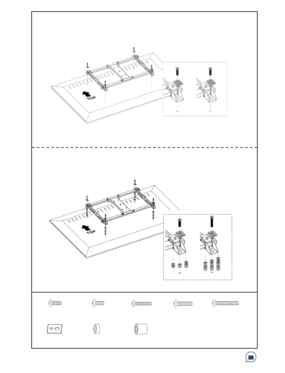 assembly to TV using appropriate screws (M-C, M-D, M-E), Square Washers (M-F) and Spacers